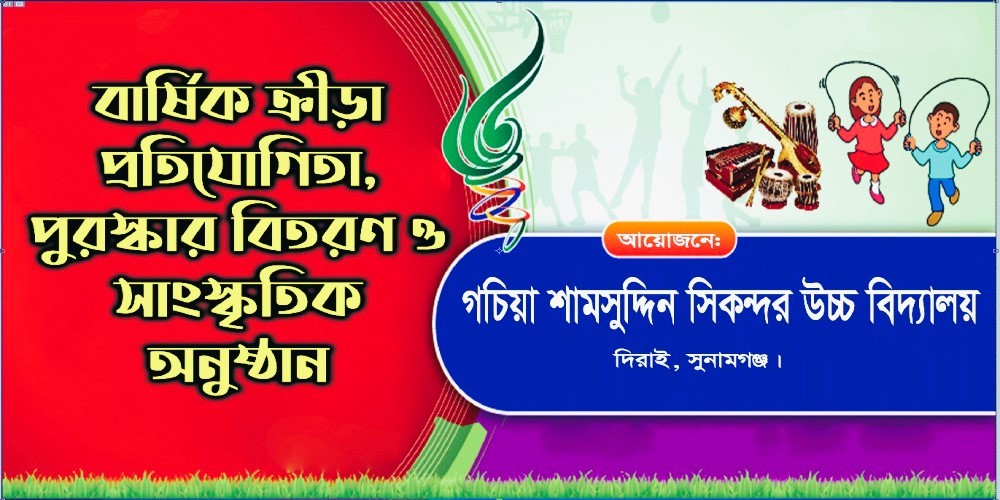 Assalamu Alaikum/Adab, Annual sports competition, prize distribution and cultural program - 2025 will be held at "Gachia Shamsuddin Sikander High School" on February 12 and 13, Wednesday and Thursday. I sincerely wish you to attend the event.